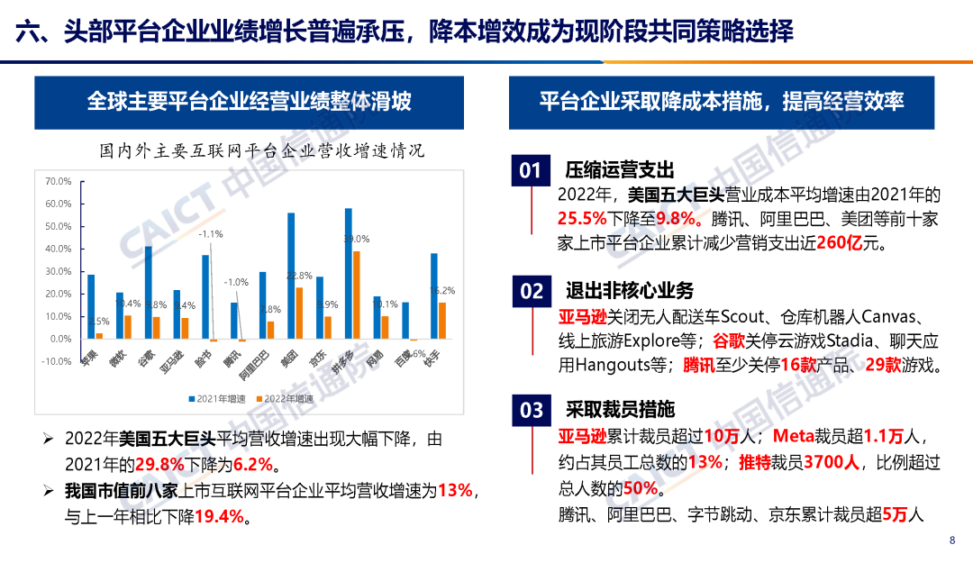 9 月 27 日,中国信息通信研究院发布了报告《平台经济发展观察( 2023 年)》,认为,全球平台经济高速发展面临挑战。